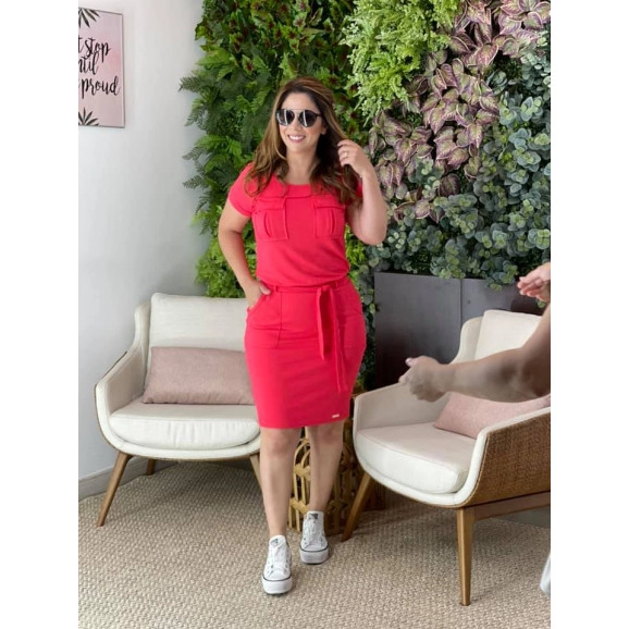 Vestido de moletinho. Possui elástico no cós, bolsos funcionais e faixa para amarrar na cintura. Composição: 97% viscose 3% elastano