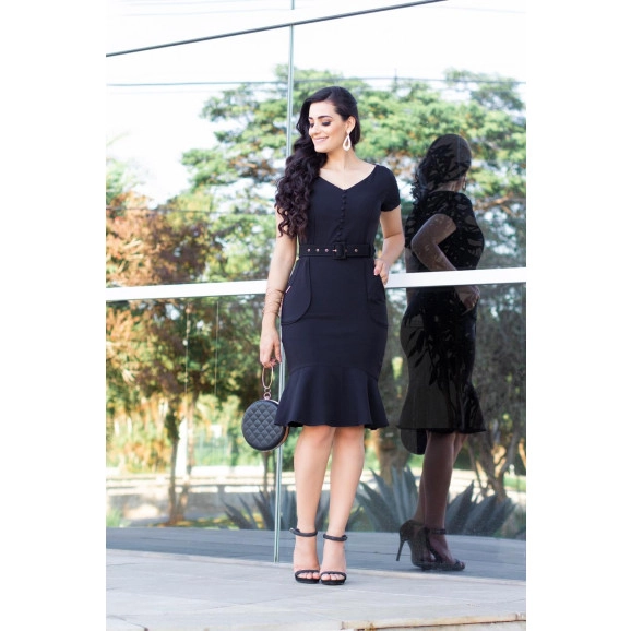 Produto: Vestido Detalhe em Botões Preto Clara Rosa