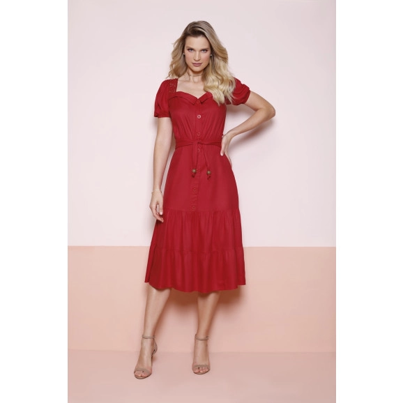 Vestido Detalhe em Botões Vermelho Fasciniu's