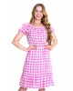 Vestido em viscose com estampa xadrez. decote canoa com elástico interno e babado, cós em lastex, saia com babado. Possui forro. Composição 100% viscose