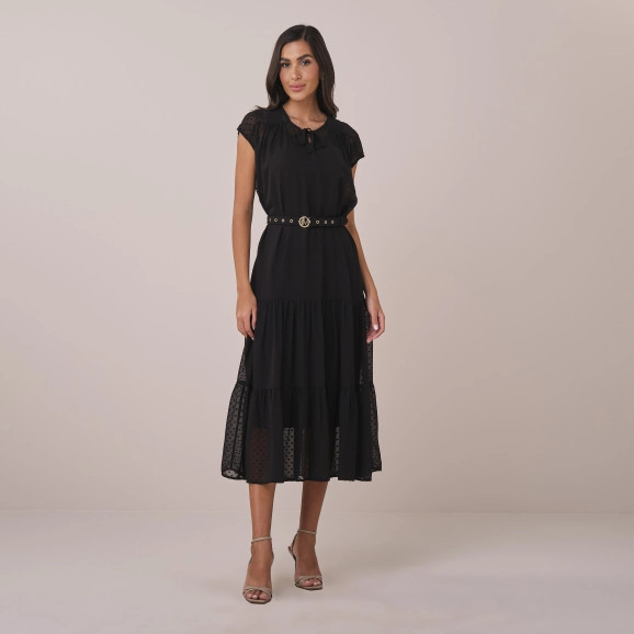 Vestido Edneia Em Chiffon Poa Preto Tatá Martello