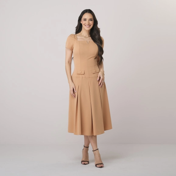 Vestido Elida Em Alfaiataria Brunello Bege Tata Martello