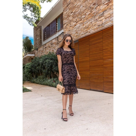 Produto: Vestido em Renda Peplum Preto Maria Amore