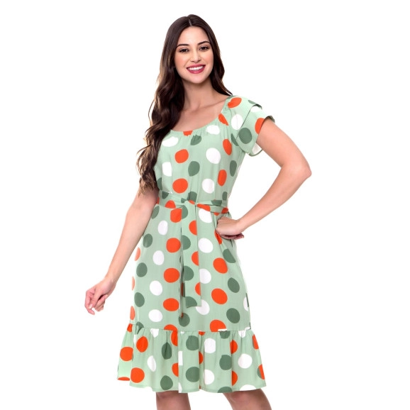 Vestido em Viscose Poá Verde Hapuk (pré venda)