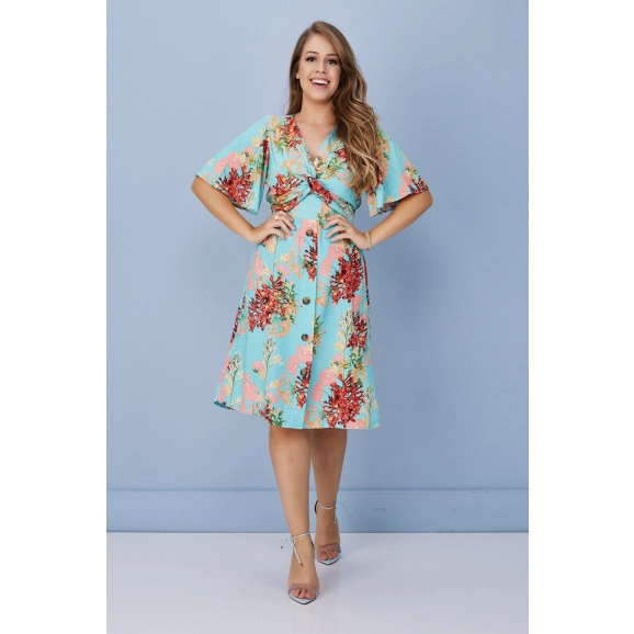 Detalhe: vestido com detalhe entrelaçado no busto, detalhe em botões, amarração nas costas. Dress lindo, fluído, a cara do verão!