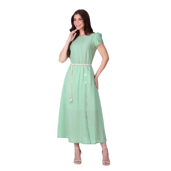 Vestido Fabia Em Tecido Plano Listrado Verde Hapuk