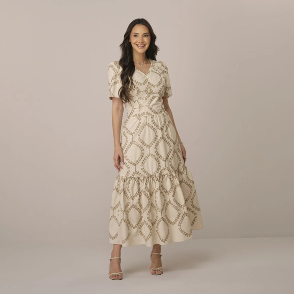 Vestido Fabiana Em Bordado Gigi Bege Tatá Martello