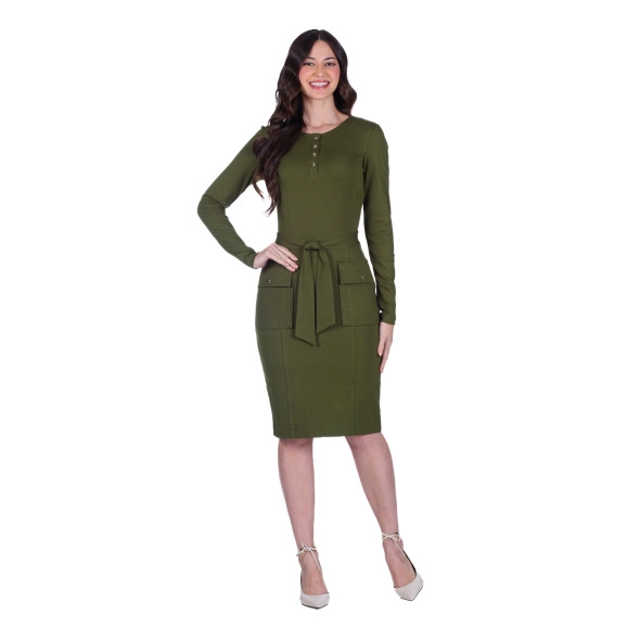 Vestido Fatima Em Ponto Roma Verde Militar Hapuk