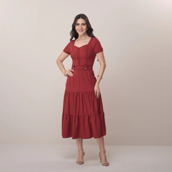 Vestido Franciele Em Crepe Maresia E Renda Vermelho Tata Martello