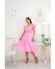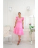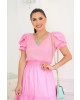 Vestido fluído, lastex duplo, decote v, manga princesa com babadinho e saia três marias.