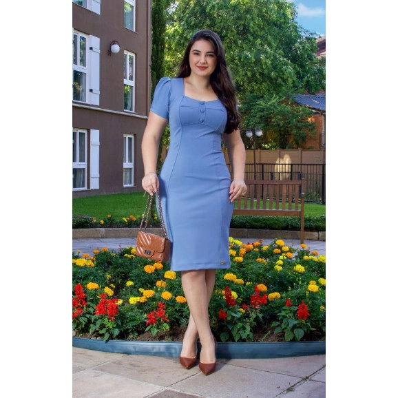 Vestido Geane s/ ziper com botões não funcionais