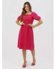 Vestido na viscose, com corpinho traseiro de lastex, detalhe de guipir em toda frente e decote quadrado. Possui elastico no ombro e punho e manga princesa. Comprimento secretária com shape evasê