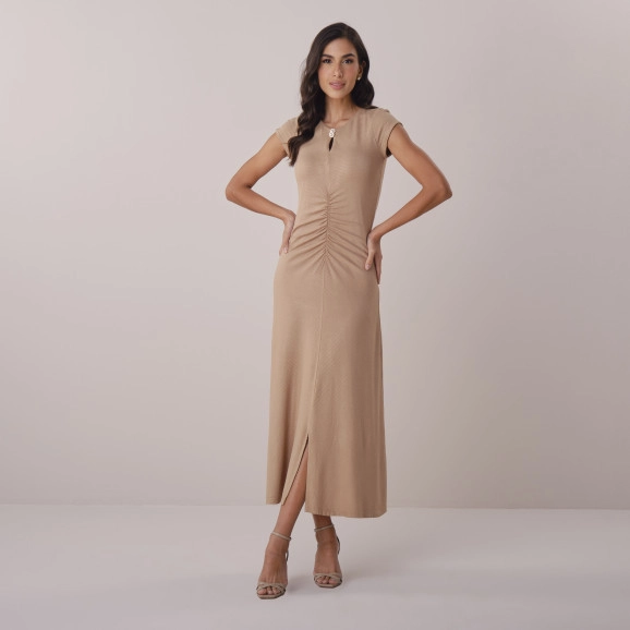 Vestido Gisele Em Visco Lady Forrado Bege Tata Martello