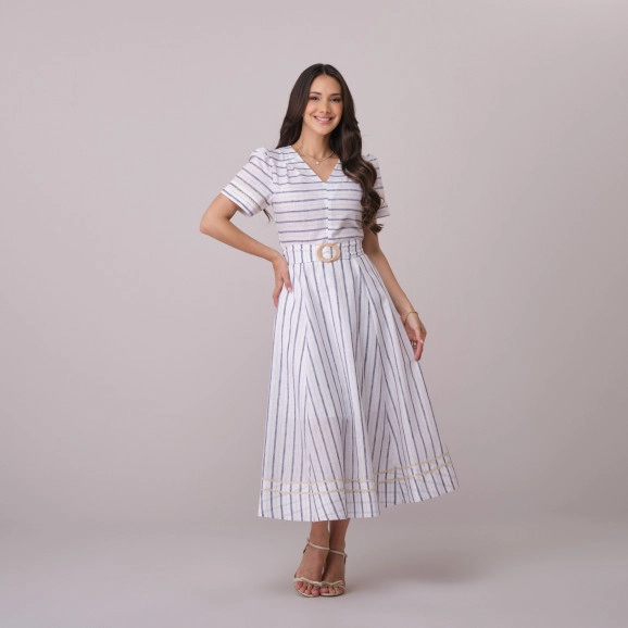 Vestido Giulia Em Cotton Listrado Azul Tata Martello