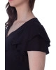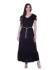 Vestido confeccionado em tecido plano, botões encapados fixos, fechamento lateral por zíper, acompanha cordão e possui forro.