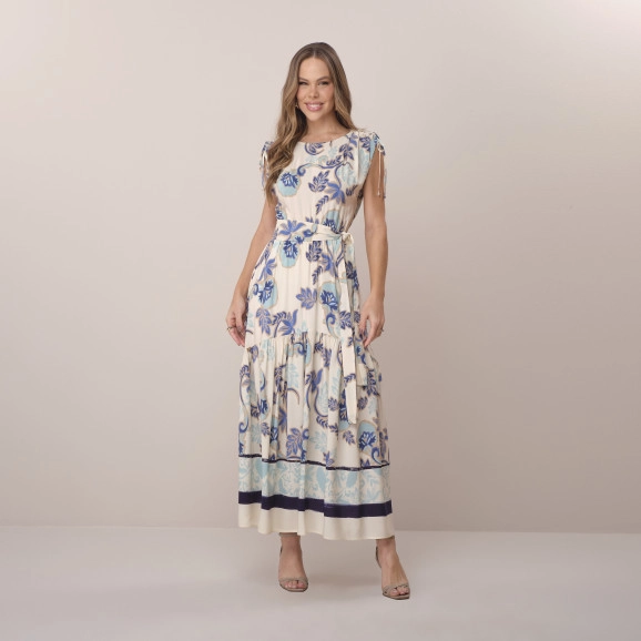 Vestido Gleci Em Viscose Azul Tatá Martello