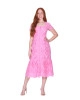 Vestido confeccionado em laise, decote reto, fechamento frontal em botões, detalhe em guipir, lastex nas costas e possui forro.