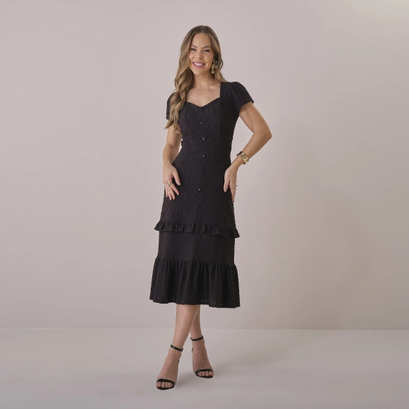 Vestido Helenice Em Renda Jacquard Preto Tata Martello