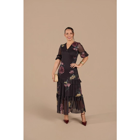 Vestido Heloisa Em Tule Preto Florido Jany Pim