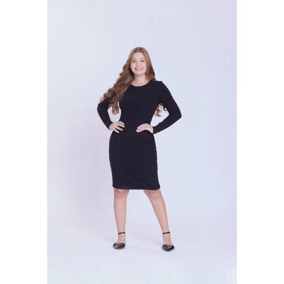 Vestido Isabella Em Malha Canelada Preto Hapuk