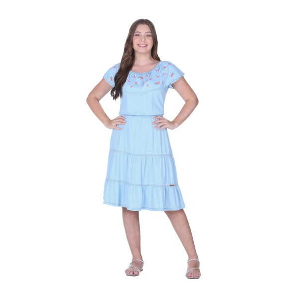 Vestido Isabelly Decote Com Elástico Interno Jeans Claro Hapuk