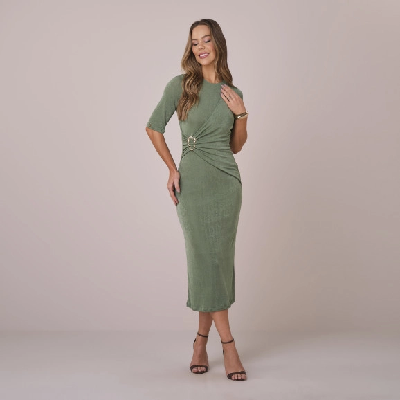 Vestido Ivy Em Malha Slik Com Fivela Verde Tatá Martello