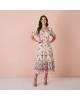 Vestido Tata Martello Caroline é confeccionado no laise de algodão bordado sem elastano. Sua modelagem é acinturado e evasê com perfeito caimento. Com decote princesa e recortes nos seios que ajudam a emoldurá-los, a peça se torna romântica e delicada, além de destaca a região do colo. Apresenta mangas de comprimento normal com franzido nos ombros e nos punhos, além do detalhe em amarração que adiciona um toque de feminilidade. Conta com detalhe em botões resinados não funcionais frontais no corpo do vestido e lastéx na parte posterior para auxiliar no vestimento. Seu comprimento midi alonga a silhueta e proporciona um movimento gracioso e elegante. Para garantir o melhor conforto a peça é forrada!