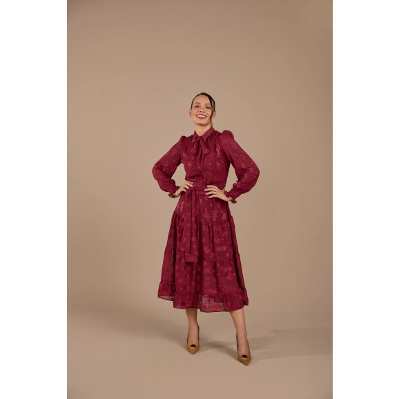 Vestido Josy Em Crepe Jacaquard Marsala Jany Pim