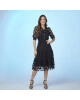 Vestido Tatá Martello Joyce. Confeccionado na renda, decote redondo com gola polo, manga três quartos com lastex no punho, botões funcionais na parte da frente com detalhes de bolso, elástico na cintura, modelagem evasê saia três Marias, forrado. Produzido em três variantes de cor.