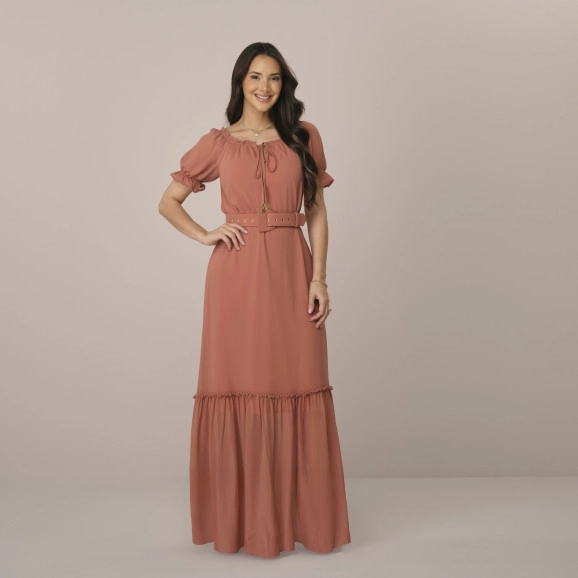 VESTIDO 6302 KATIA - TECIDO: CREPE MICHELANGELO C/ CINTO (FORRADO) - PP AO GG