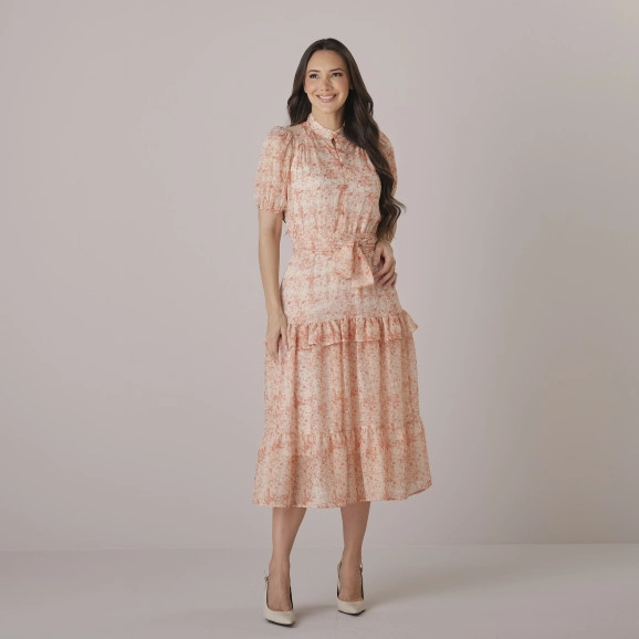 Vestido Kely Em Crepe Iris Laranja Tata Martello