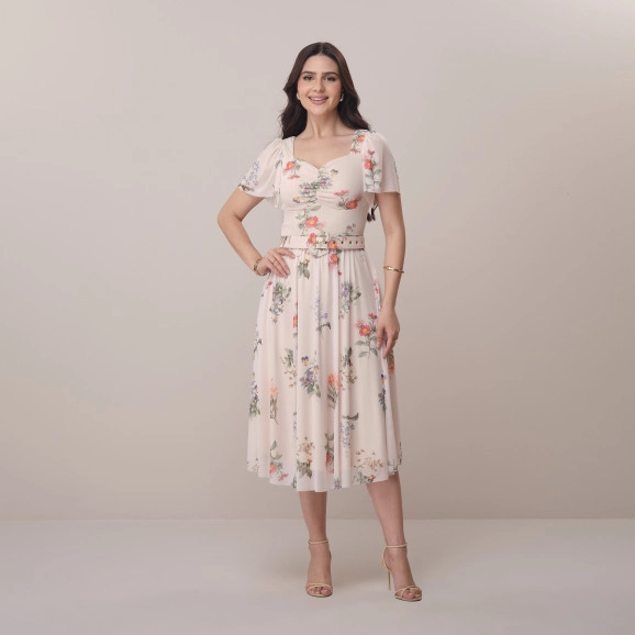 Vestido Laiany Em Tule Estampa Exclusiva Off White Tata Martello
