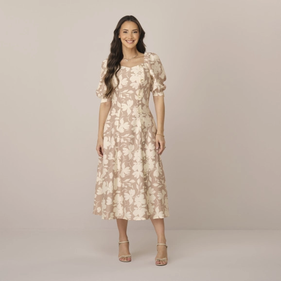 Vestido Laura Em Bamboo Rayon Bege Tatá Martello