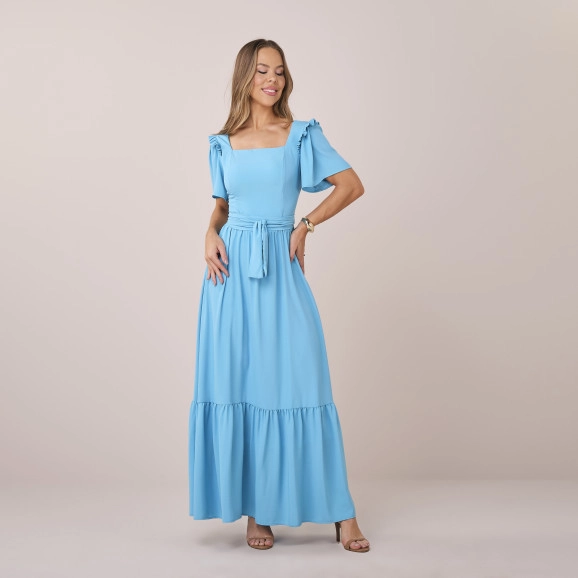 Vestido Leticia Em Crepe Tangier Azul Tatá Martello