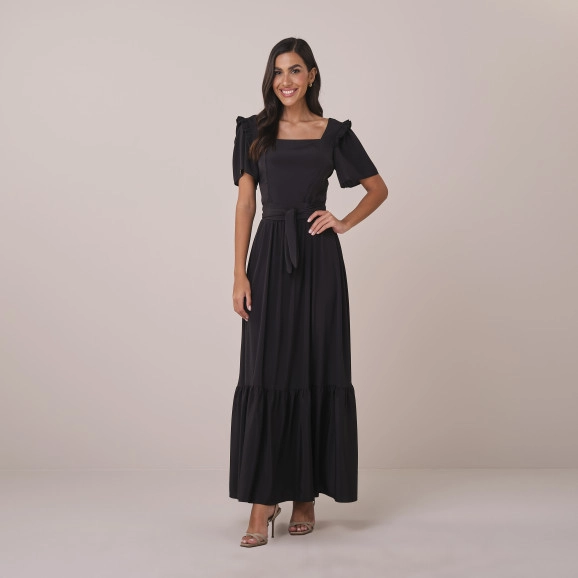 Vestido Leticia Em Crepe Tangier Preto Tatá Martello
