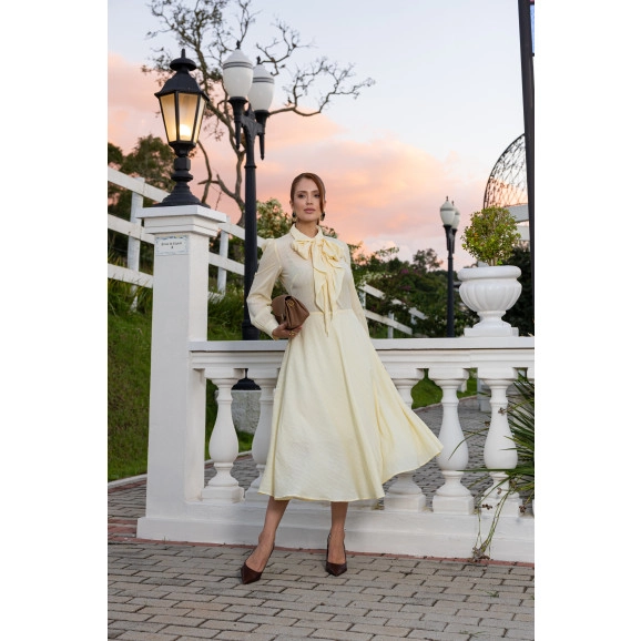 Vestido Leticia Em Tecido Rayon Amarelo Jany Pim