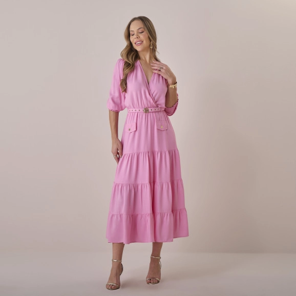 VESTIDO 5935 LIDIANE - TECIDO: RAYON TWILL(CINTO ACOMPANHA) - PP AO GG