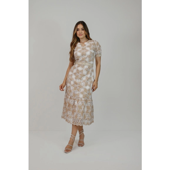 Vestido Lilian Em Bordado Inglês Bege Nítido