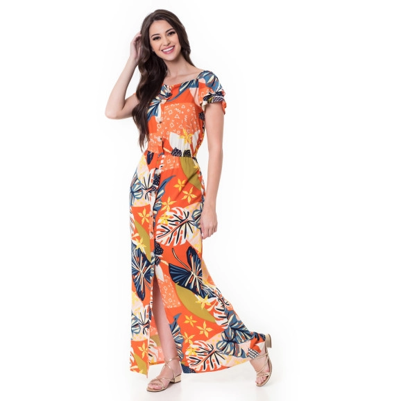 Produto: Vestido Longo com Botões Laranja Hapuk