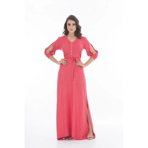 Produto: Vestido Longo com Recorte Coral Via Tolentino