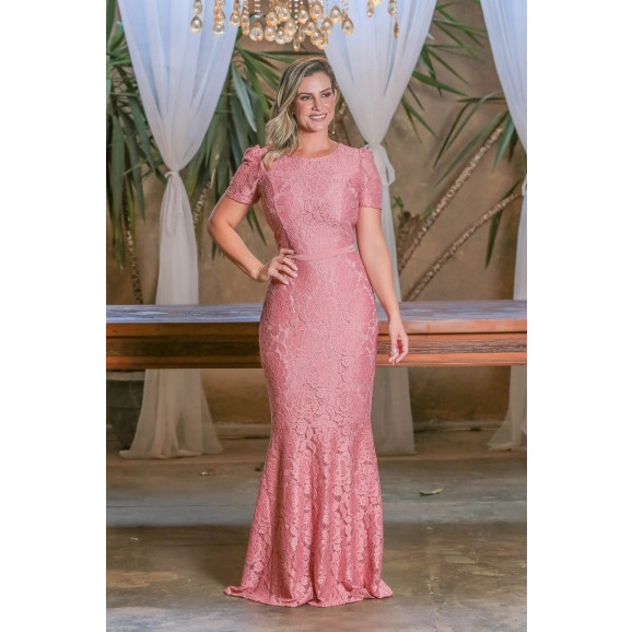 Produto: Vestido Longo em Renda Rose Sol da Terra