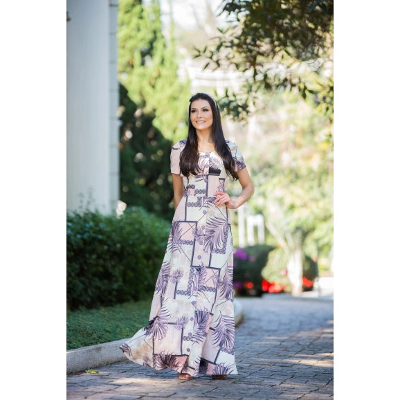 Produto: Vestido Longo Estampado Bege Maria Amore