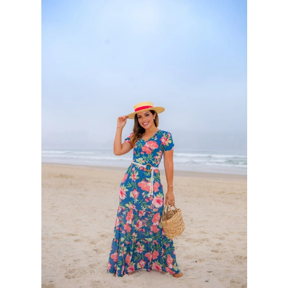 Detalhe: Vestido longo floral possui fechamento em zíper atrás. Tecido super levinho, ideal para você curtir a estação!