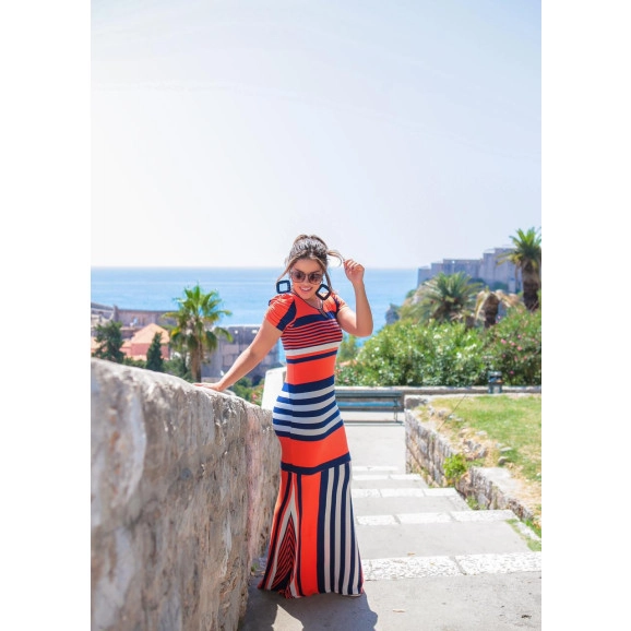 Produto: Vestido Longo Listrado Laranja Boutique K