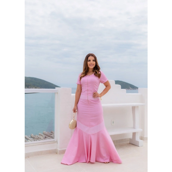 Vestido Longo Rosa Joyaly