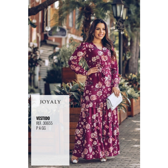 Vestido Longo Transpasse e Babados Joyaly