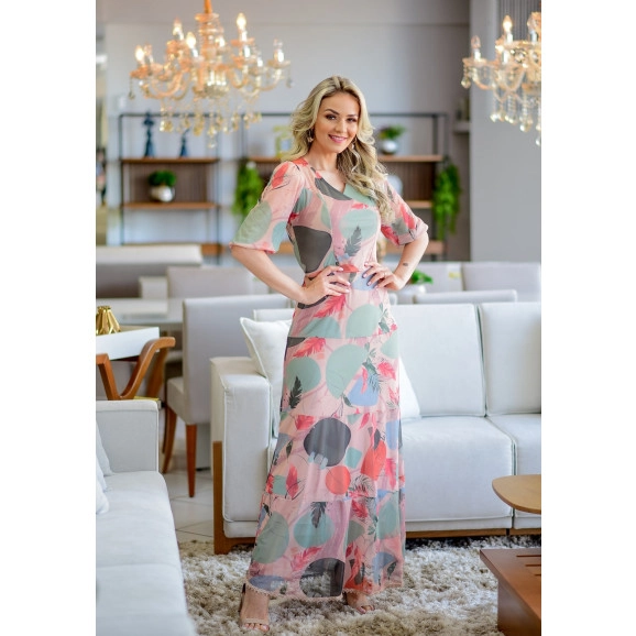 Vestido longo, tecido: tule, estampado,modelo: três marias,manga 3/4 Vestido Lindo, super delicado, ideal para eventos ou culto!