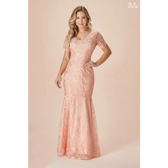 Detalhe: Vestido longo confeccionado em tule rendado, possui fechamento em zíper atrás. Uma ótima opção para festas de casamentos e formaturas.