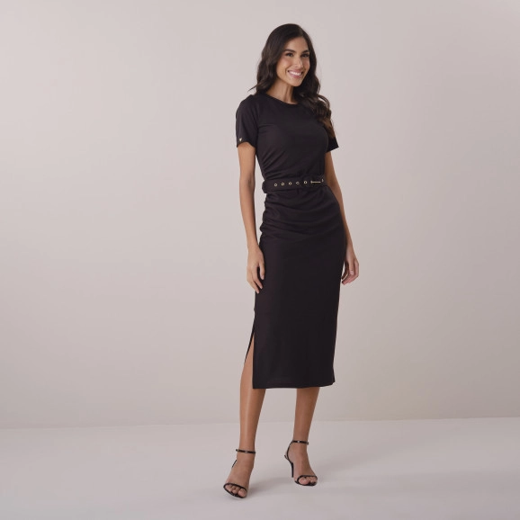 Vestido Lorena Em Malha Rib Preto Tata Martello