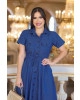 TECIDO: Jeans (sem elastano, sem forro) DESCRIÇÃO: Vestido jeans godê com gola, detalhe em bolso frontal no busto, botões frontais e bolso faca lateral.